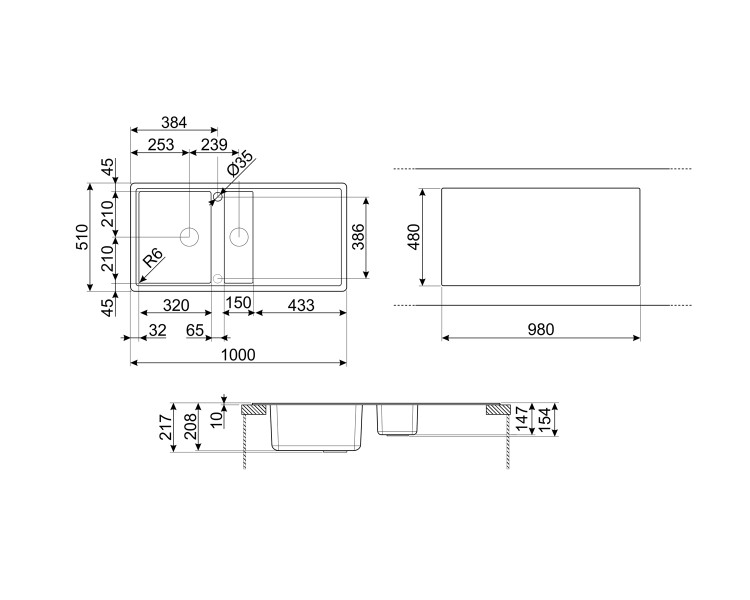 SMEG Spoelbak Semi-vlakbouw, Composiet LSX 102 N