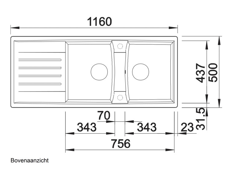 | Afdruipblad spoelbak | omkeerbaar met verlek |