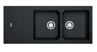 Franke dubbele spoelbak met verlek - Fragranite - Omkeerbaar - Hittebestendig - Onyx Zwart - BLG621OX1