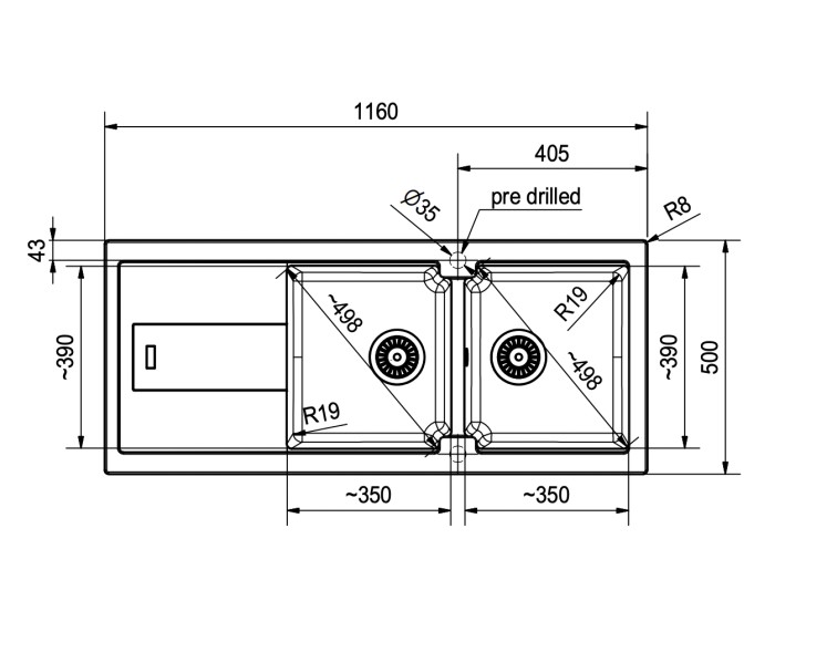 | Afdruipblad spoelbak | omkeerbaar met verlek |