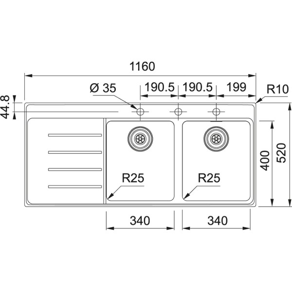 Franke MYX 221TLR 1 Dubbele spoelbak