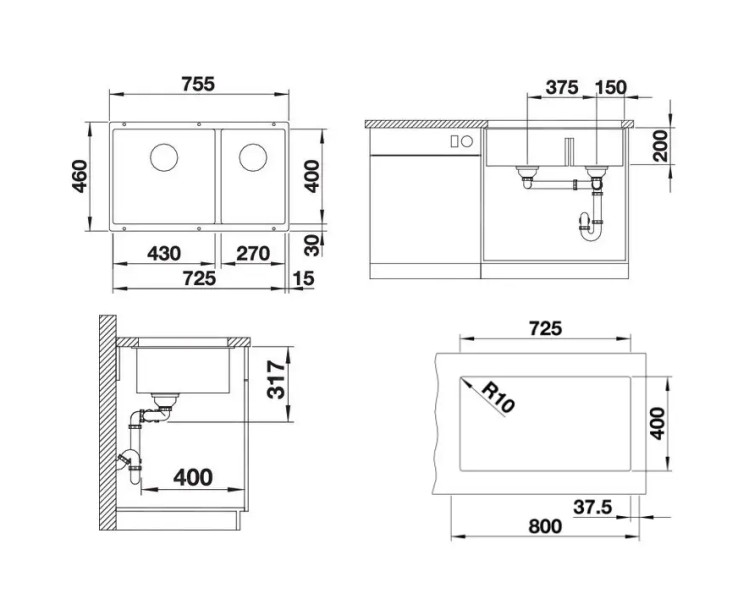 2 in 1: twee spoelbakken, één uitsparing en slechts één montageprocedure