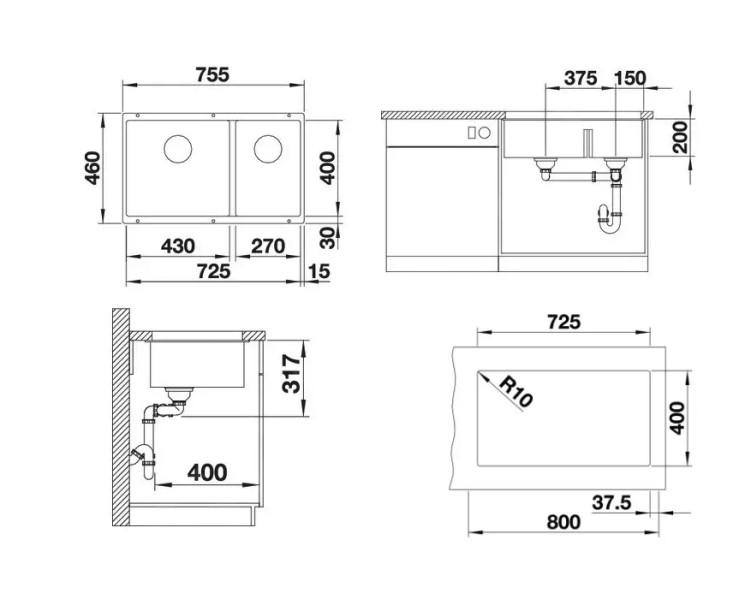 2 in 1: twee spoelbakken, één uitsparing en slechts één montageprocedure