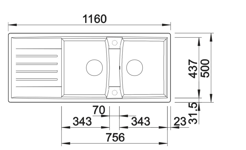 Modern spoelcentrum voor elk keukeninterieurHarmonisch design van de buitencontouren en hoekradii