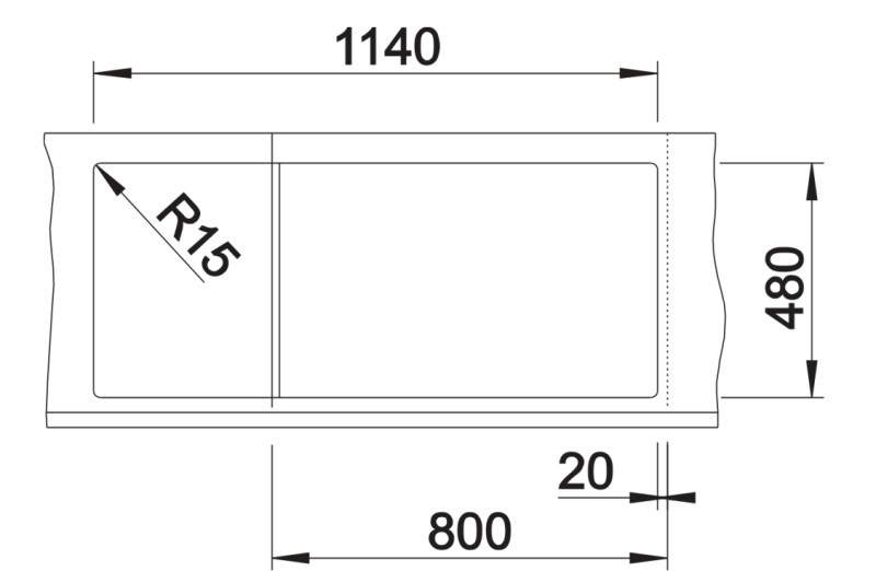 Modern spoelcentrum voor elk keukeninterieurHarmonisch design van de buitencontouren en hoekradii