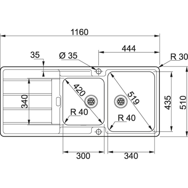 Buitenmaat 1160 x 510 mm