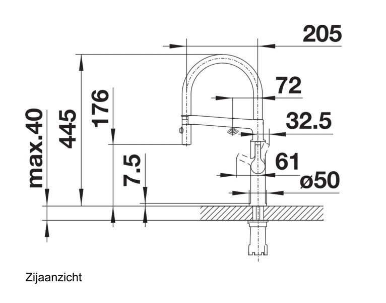 Franke Pescara - Semi-professionele kraan met beweegbare uitloop L / Side lever / RVS 301793 301793