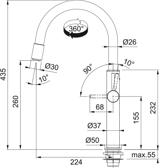 KENMERKENEéngreepsmengkraan met zwenkbare uitloop met sproeier Up & Down
