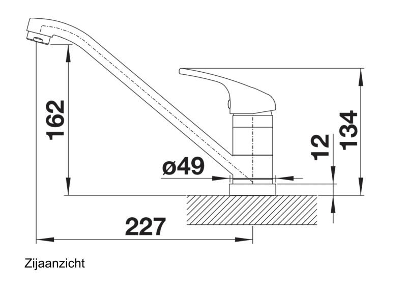 Minimale afstand tussen spoeltafel en venstervleugel 3 cm