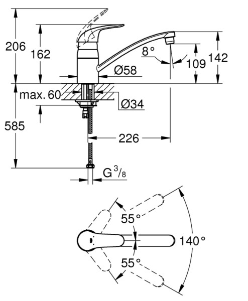 Grohe Euroeco keukenmengkraan, eengatsmontage