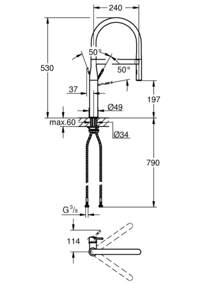 Grohe Minta keukenmengkraan, L-uitloop met uittrekbare sproeier (2 stralen), SuperSteel 30274 DC 0