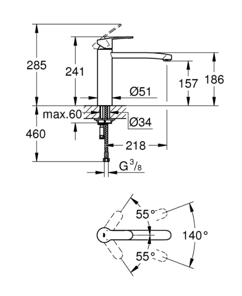 Grohe Eurostyle Cosmopolitan ééngreepsmengkraan ½" voor gootsteen, verhoogd, chroom 31124002