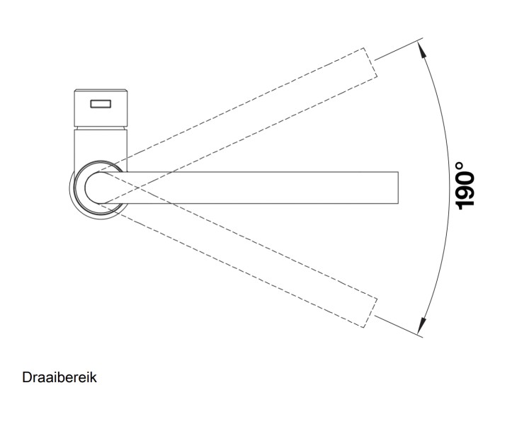Meer bewegingsvrijheid bij installatie tegen een muur dankzij de bedieningshendel die verticaal staat in neutrale positie