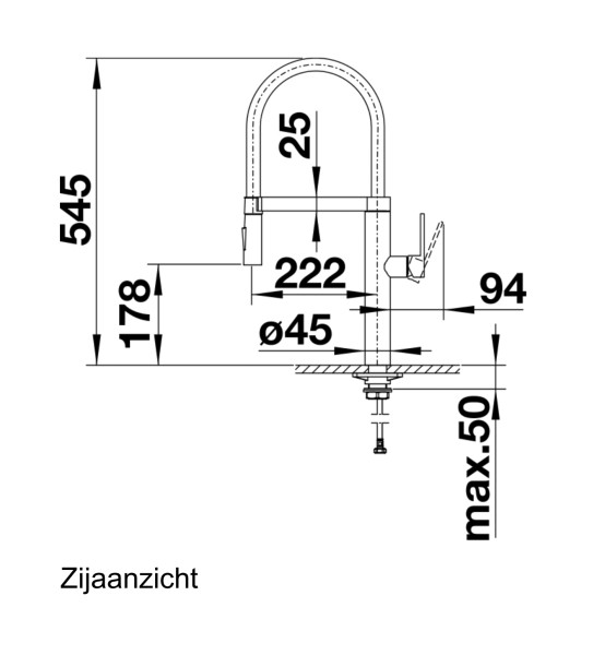 Franke Pescara - Semi-professionele kraan met beweegbare uitloop L / Side lever / RVS 301793 301793
