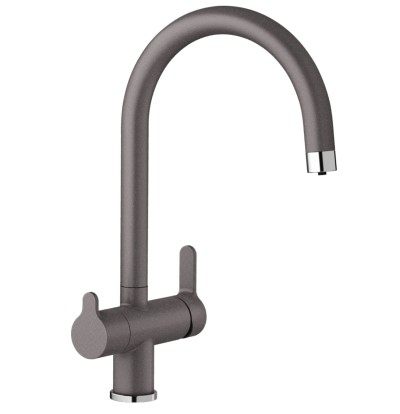 Comfortabele 3-in-1-mengkraan met bedieningshendel voor koud en warm water aan rechterzijde en bedieningshendel voor gefilterd water aan linkerzijdeErgonomisch gevormde bedieningselementen met duidelijke functies