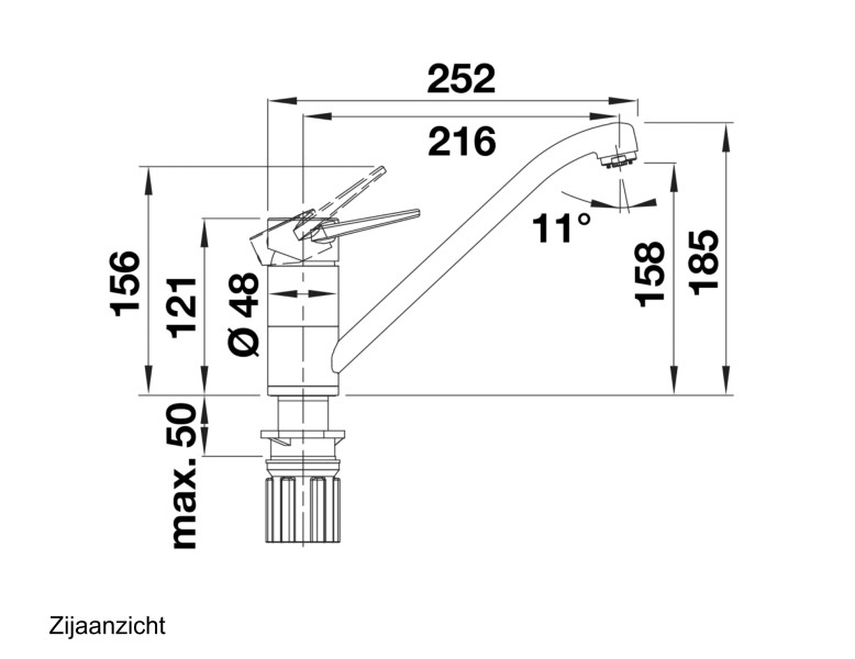 Uitloop 180° draaibaarKraangat van Ø 35 mm vereist