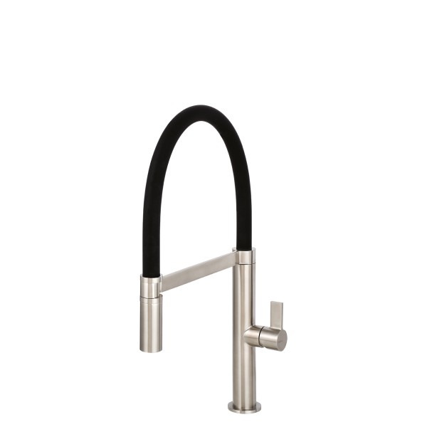 Eenhendel keukenmengkraanStandaard met zwarte slang geleverd.
