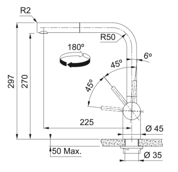| Uitloop kraan | uittrekbare uitloop |
