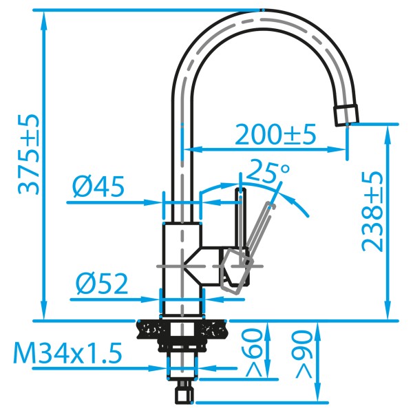 Caressi ééngreepsmengkraan - keuken 199421 CA 121 IECO