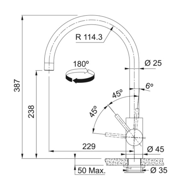 | Uitloop kraan | zwenkbare uitloop |