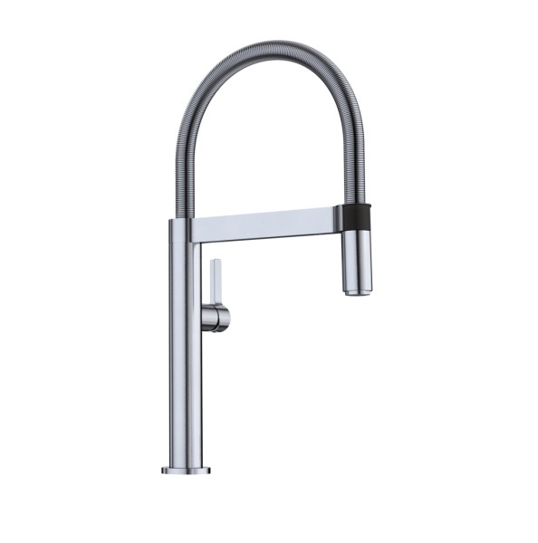 De fijne, roestvrij stalen veer zorgt voor bewegingsvrijheid tot in de spoelbak