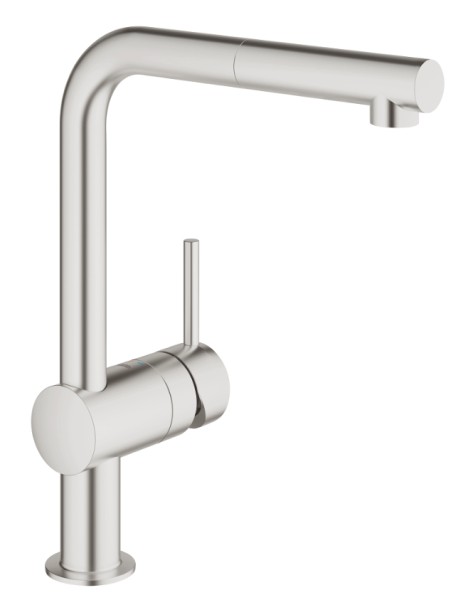 Grohe Minta ééngreepsmengkraan ½" voor gootsteen, met draaibare L-uitloop, uittrekbare mousseur, SuperSteel