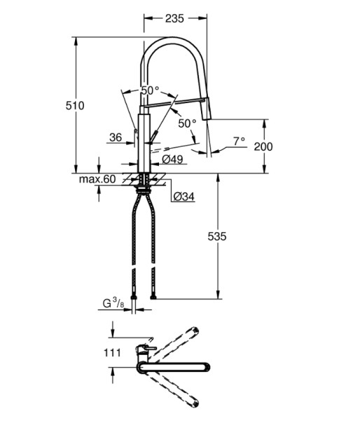 Grohe Minta keukenmengkraan, L-uitloop met uittrekbare sproeier (2 stralen), SuperSteel 30274 DC 0