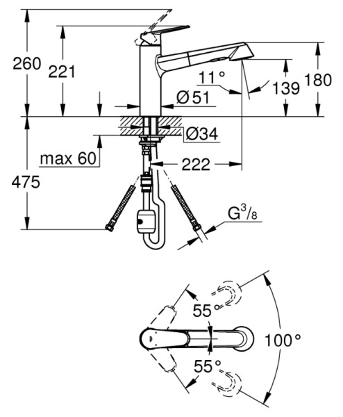 Grohe Eurodisc Cosmopolitan ééngreepsmengkraan ½", voor gootsteen, uittrekbare sproeier, chroom 32257002