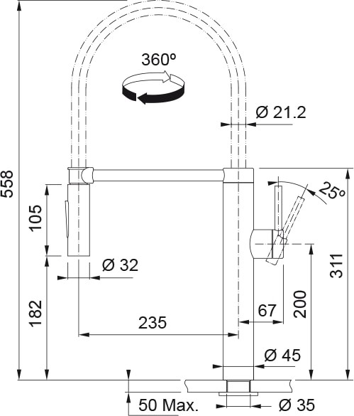 Franke Pescara - Semi-professionele kraan met beweegbare uitloop L / Side lever / RVS 301793 301793