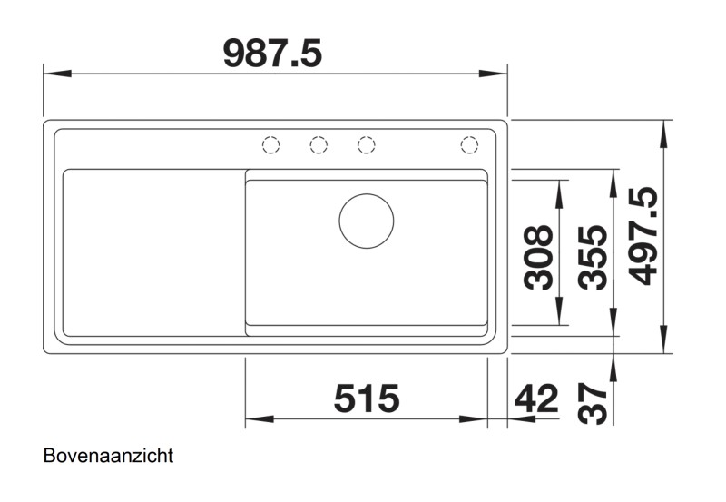 | Breedte (buitenmaat toestel) | 987,5 mm |