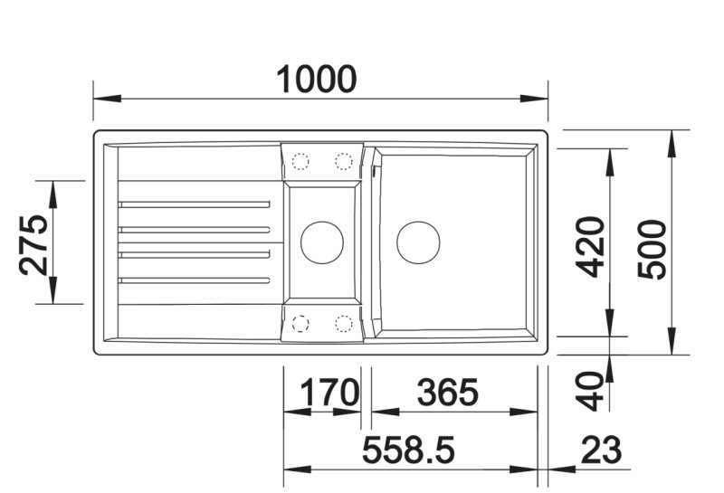 | Afdruipblad spoelbak | omkeerbaar met verlek |