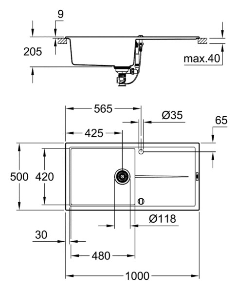| Breedte (buitenmaat toestel) | 1.000 mm |