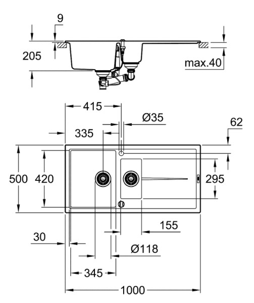 | Breedte (buitenmaat toestel) | 1.000 mm |