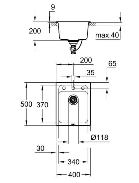 inbegrepen accessoires: automatische lediging met draaigreep, afvoerset, ventiel met zeef, bevestigingsset
