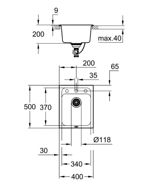 inbegrepen accessoires: automatische lediging met draaigreep, afvoerset, ventiel met zeef, bevestigingsset