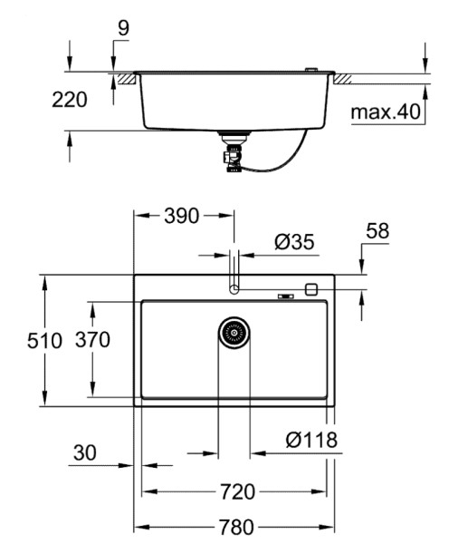 inbegrepen accessoires: automatische lediging met draaigreep, afvoerset, ventiel met zeef, bevestigingsset