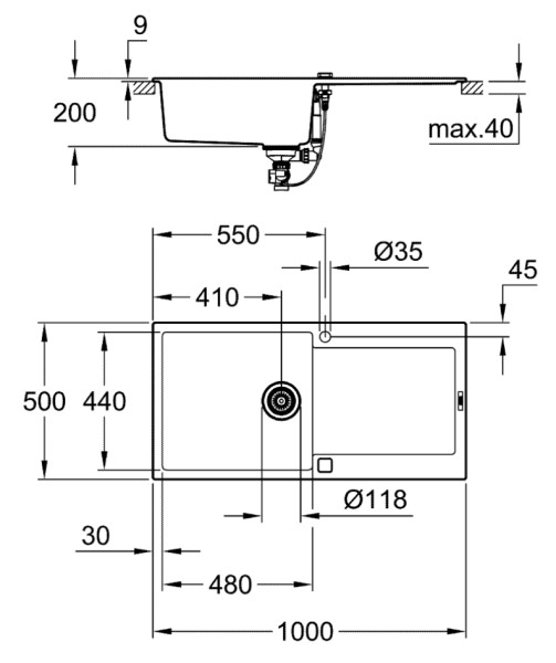 | Breedte (buitenmaat toestel) | 1.000 mm |