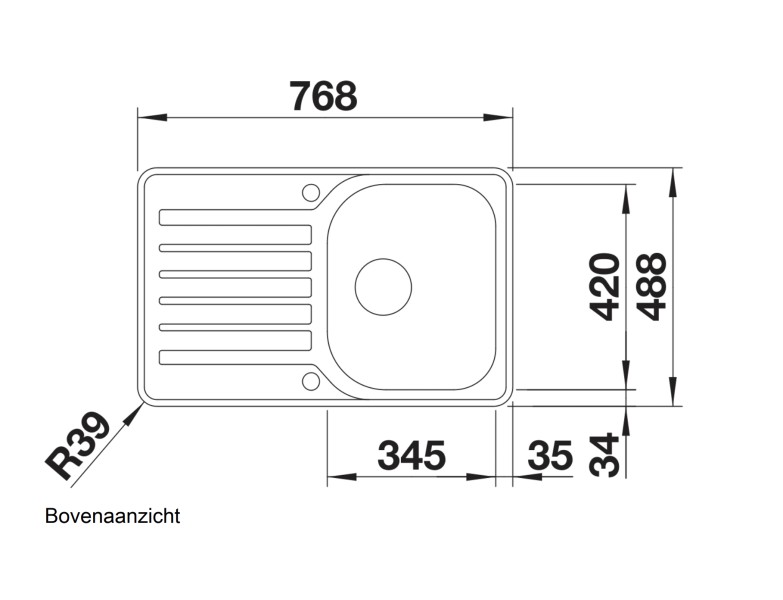 vlakbouw / onderbouw / inbouw | inox | verlek links