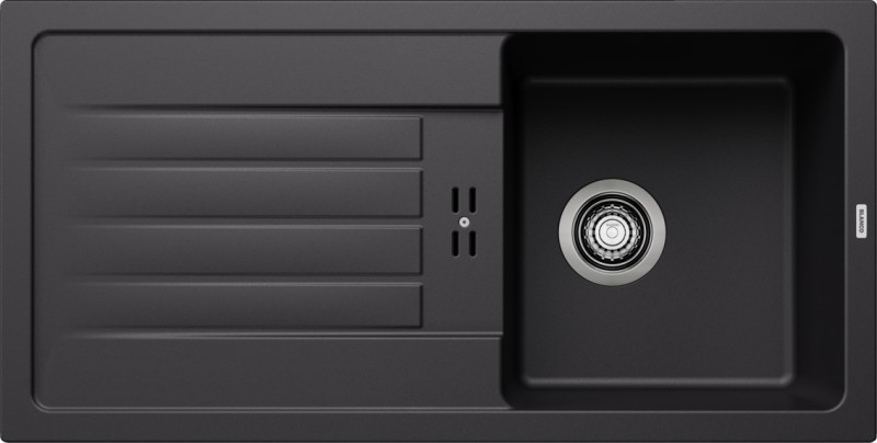 Grote spoelbak en grote afloop met harmonieus geïntegreerde overloop