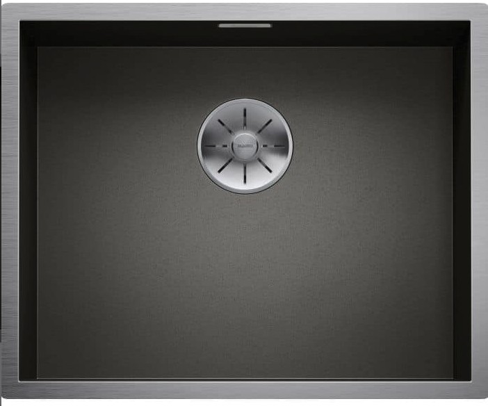 Uitgesproken rechthoekige spoelbak uit roestvrij staal met elegante, donkergrijze oppervlakkenVoelt aangenaam warm aan door hoogwaardig, zuiver roestvrij staal zonder coating