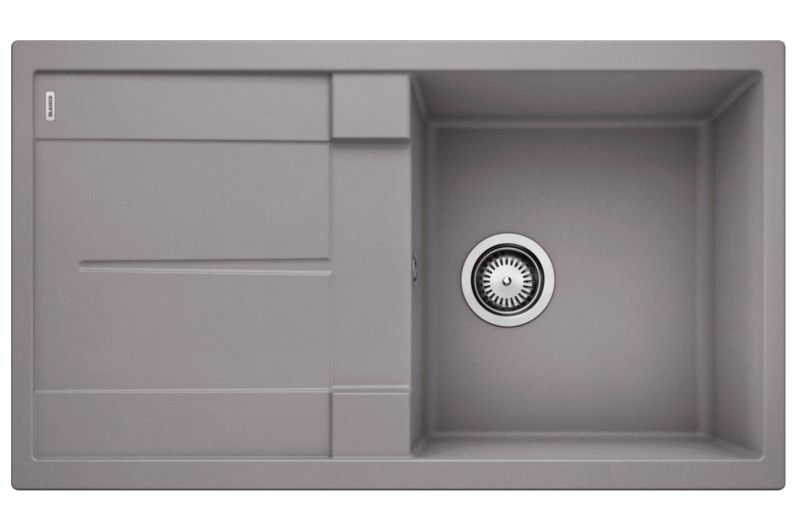 Plaatsbesparend afloopgarnituur, korfventiel 3 ½"BLANCO METRA 5 SGranieten spoeltafel in SILGRANIT® PuraDur®