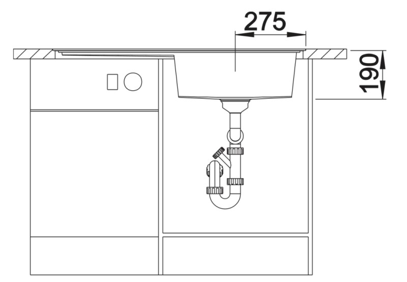 Uitzonderlijk grote bak, ruim afdruipvlakDe doorlopende kraanrichel schept veel nuttige ruimte