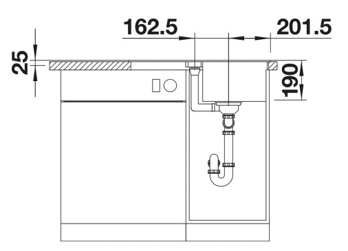 Modern spoelcentrum voor elk keukeninterieurHarmonisch design van de buitencontouren en hoekradii