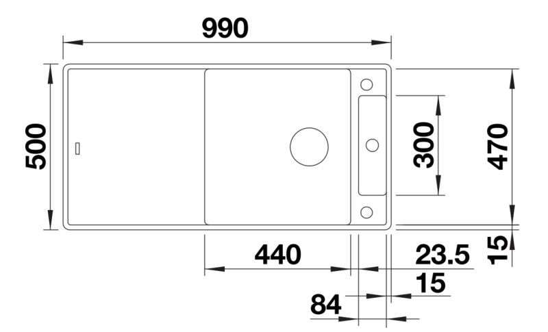 Zeer ruime spoelbak en harmonieus geïntegreerd, praktisch afdruipvlak