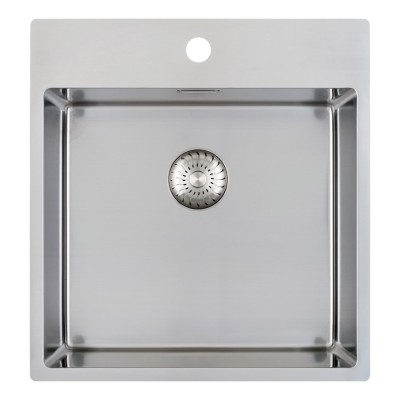 Roestvrijstaal, diepte 185mm, inclusief korfplugset met design overloop en klemmen. Extra (kraan)gat: € 50,00.