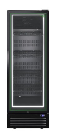 Ons grootste en meest zuinige model tot nu toe. Deze C5H-ECO-BK-NL-HU, met scharnierdeur, is een aantrekkelijke, goed gespecificeerde en goed verlichte kast met glazen voorkant die de aandacht trekt en product interesse stimuleert, waardoor de verkoop van koude dranken wordt gestimuleerd. Deze koeler is voorzien van LED-verlichting die regelbaar is met één druk op de knop, een instelbare thermostaat met digitaal temperatuurdisplay en een binnen ventilator voor de ultieme koelfunctionaliteit; laat uw dranken koelen op de gewenste temperatuur. Met zijn zuinige energielabel is het één van de meest zuinige modellen op de markt!
