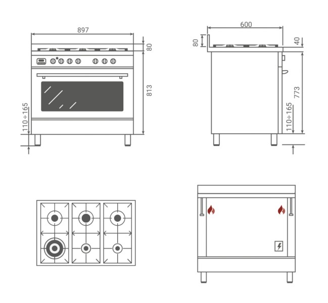 90cm - Gas/Elektrisch - Antraciet - 6 kookzones - 1 oven - Katalytische reiniging - Fornuis Gaskookplaat / Boretti ML 9016 GSANBE