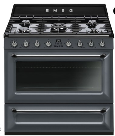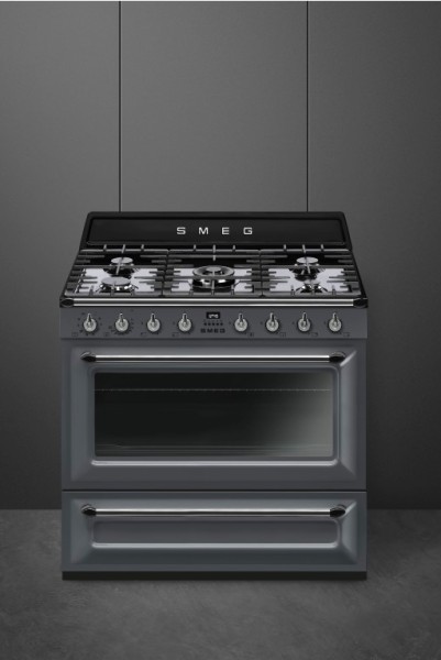 90cm - Gas/Elektrisch - Grijs - 5 kookzones - 1 oven - Hydrolytische reiniging - Fornuis gaskookplaat / Smeg TR 90 GR
