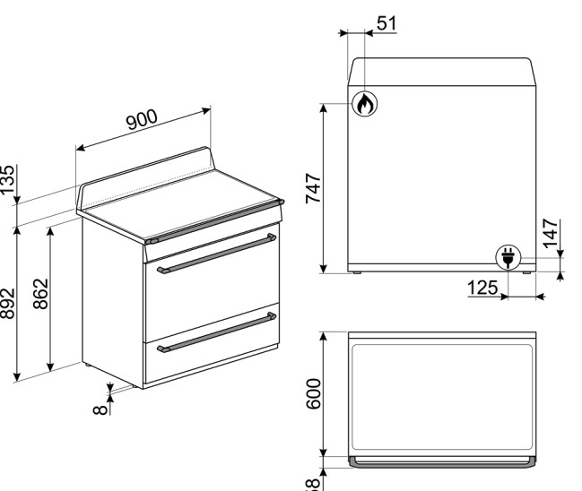 90cm - Gas/Elektrisch - Grijs - 5 kookzones - 1 oven - Hydrolytische reiniging - Fornuis gaskookplaat / Smeg
