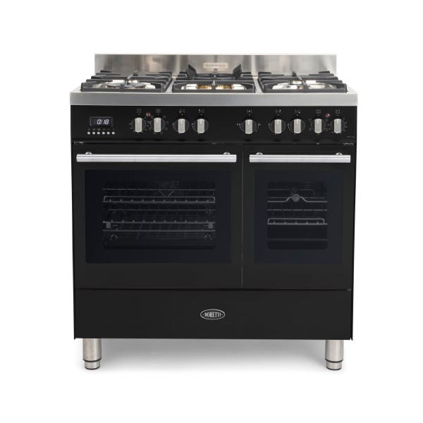 90cm - Gas/Elektrisch - Zwart - 6 kookzones - 2 ovens - Fornuis Gaskookplaat / Boretti